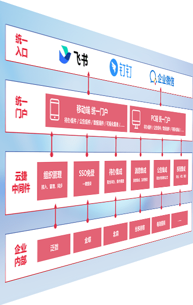 对协作平台提供支持服务,,支持企业应用与协作平台对接,,,包含组织同步、、、消息集成、、、待办集成等。。。支持目前主流的协作平台:钉钉、、企微和飞书。。。